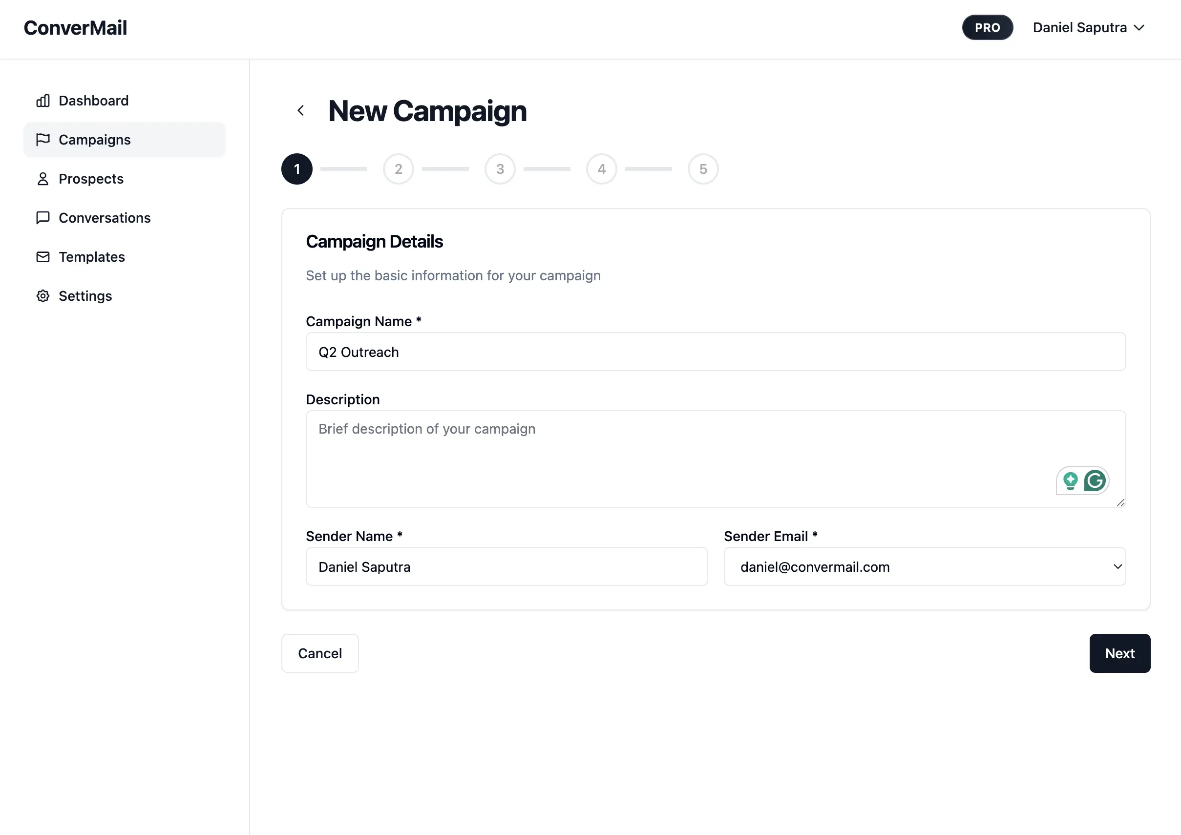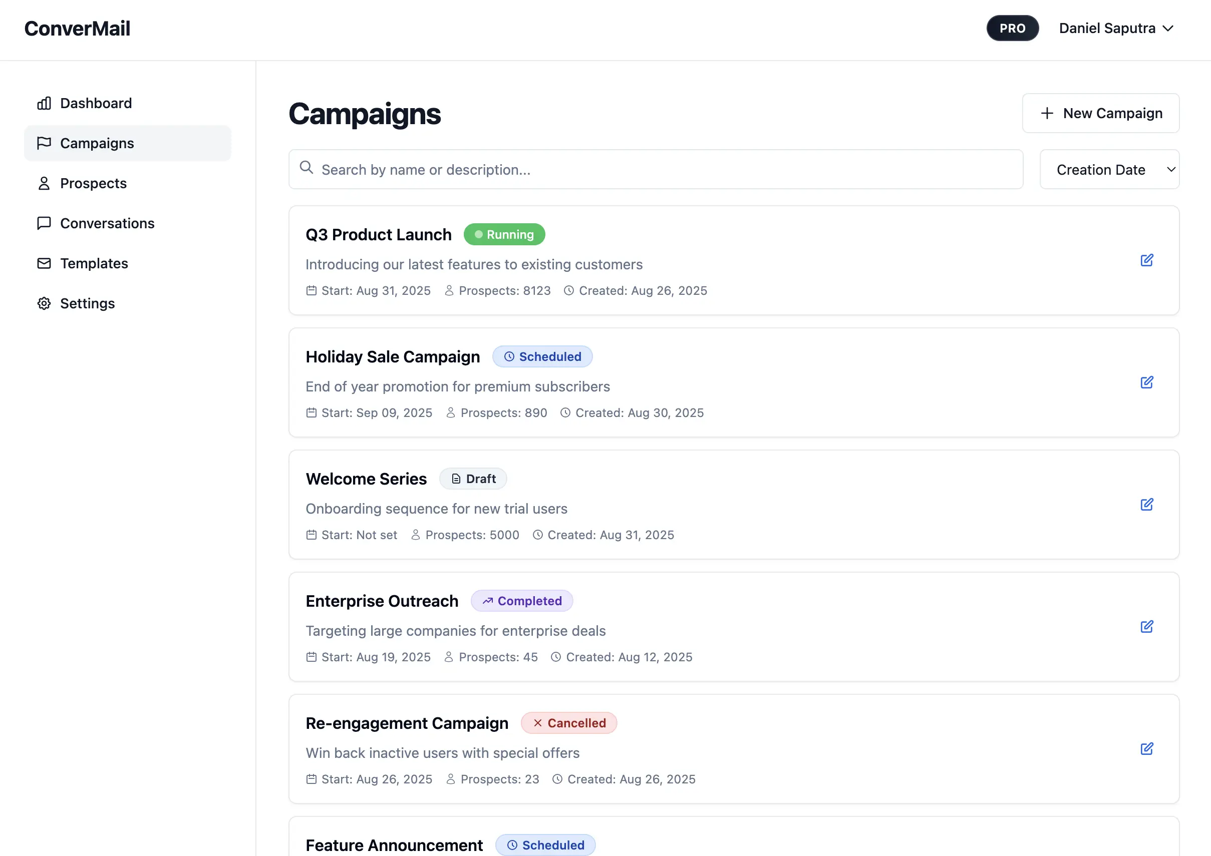 Start on the Campaigns page and click New Campaign.