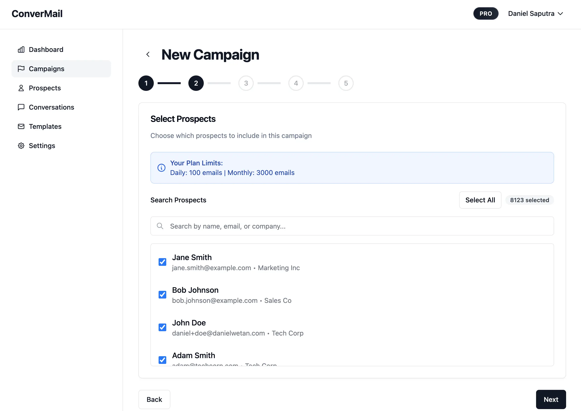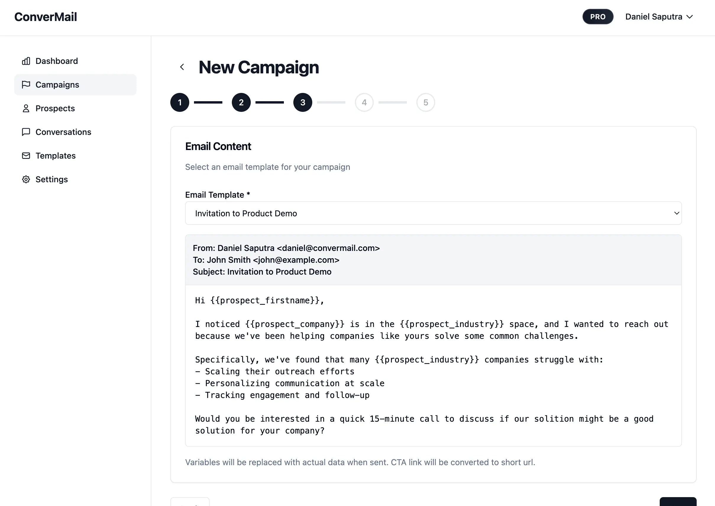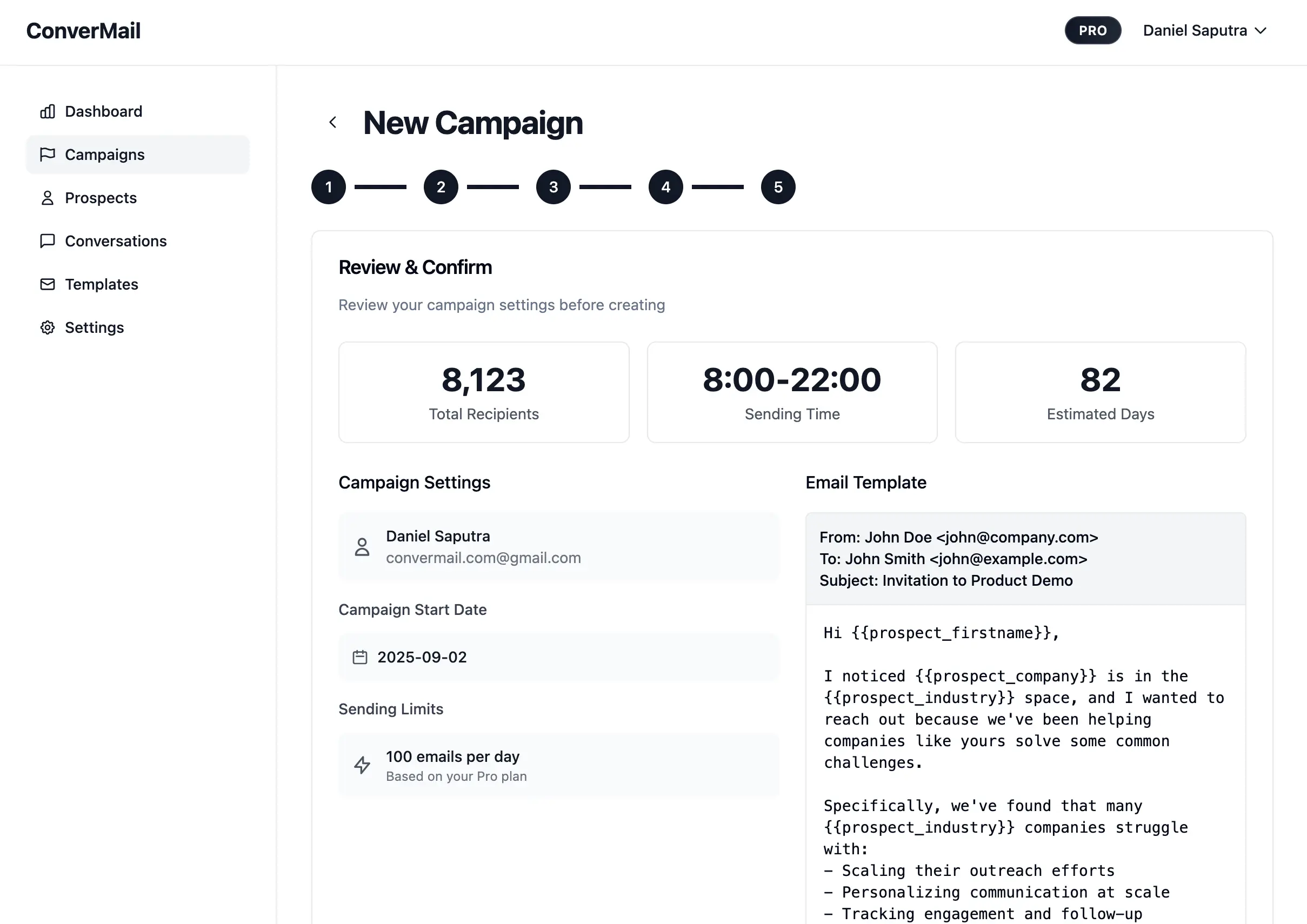 Give your campaign a clear name so you can find it later. Select a template that fits your goal. If you do not have one yet, create it in Email Templates first.