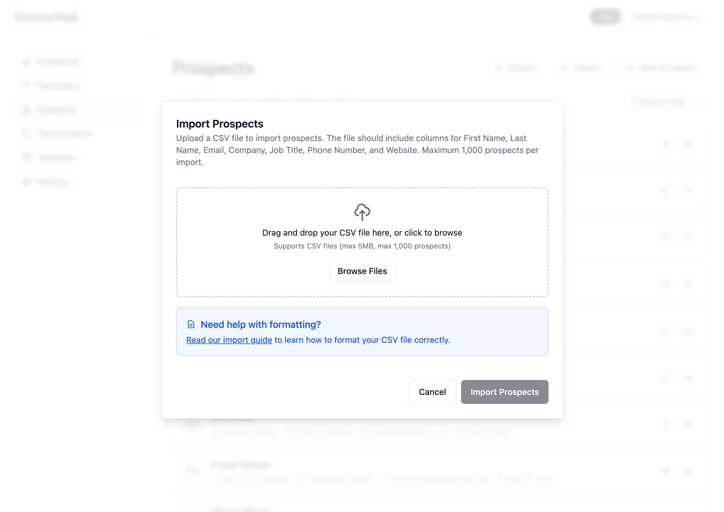 A clean CSV makes importing easy and prevents data issues later. Here is a simple format and how to map your fields during import.