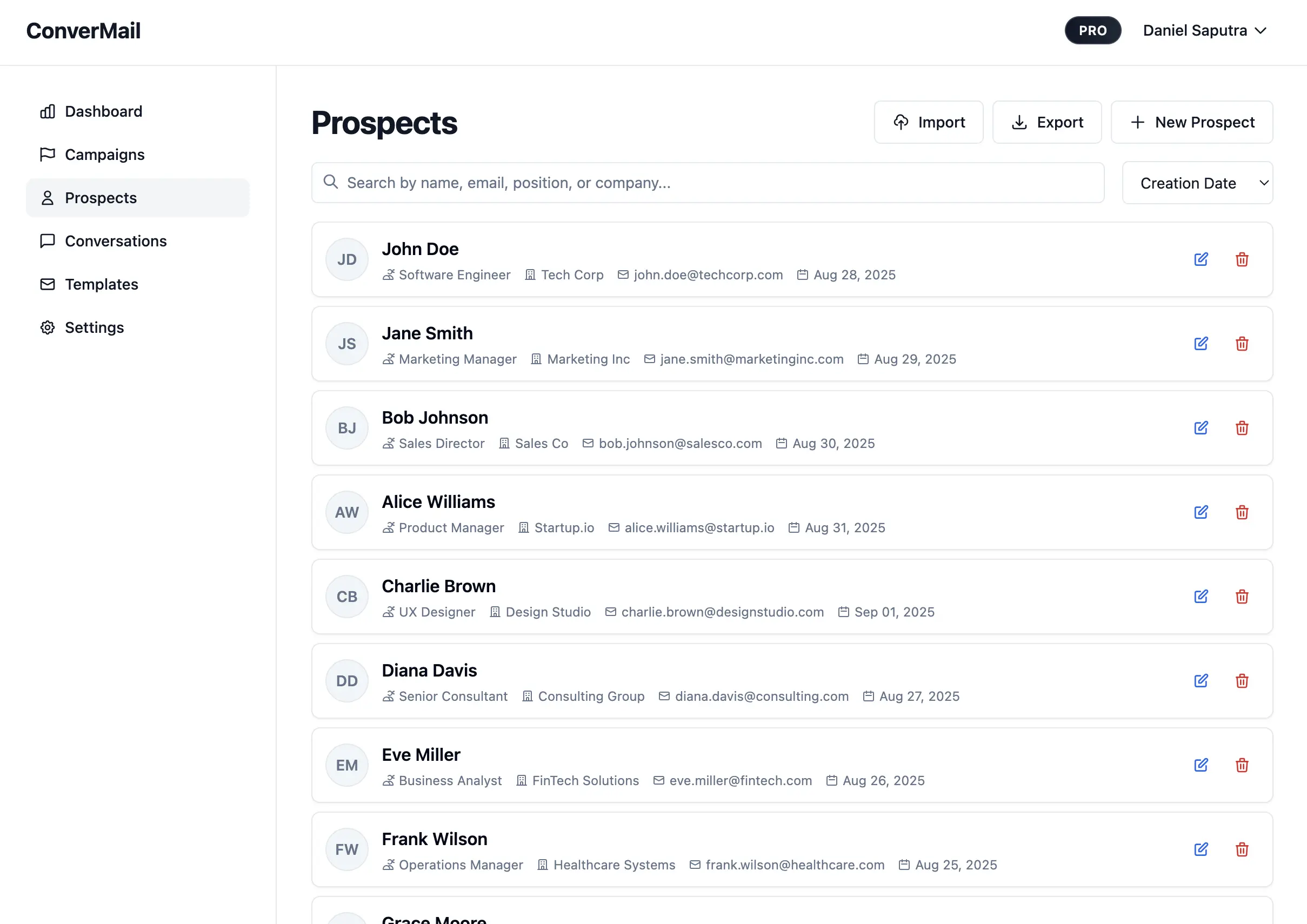 When you upload the file, ConverMail will try to map headers to fields automatically.