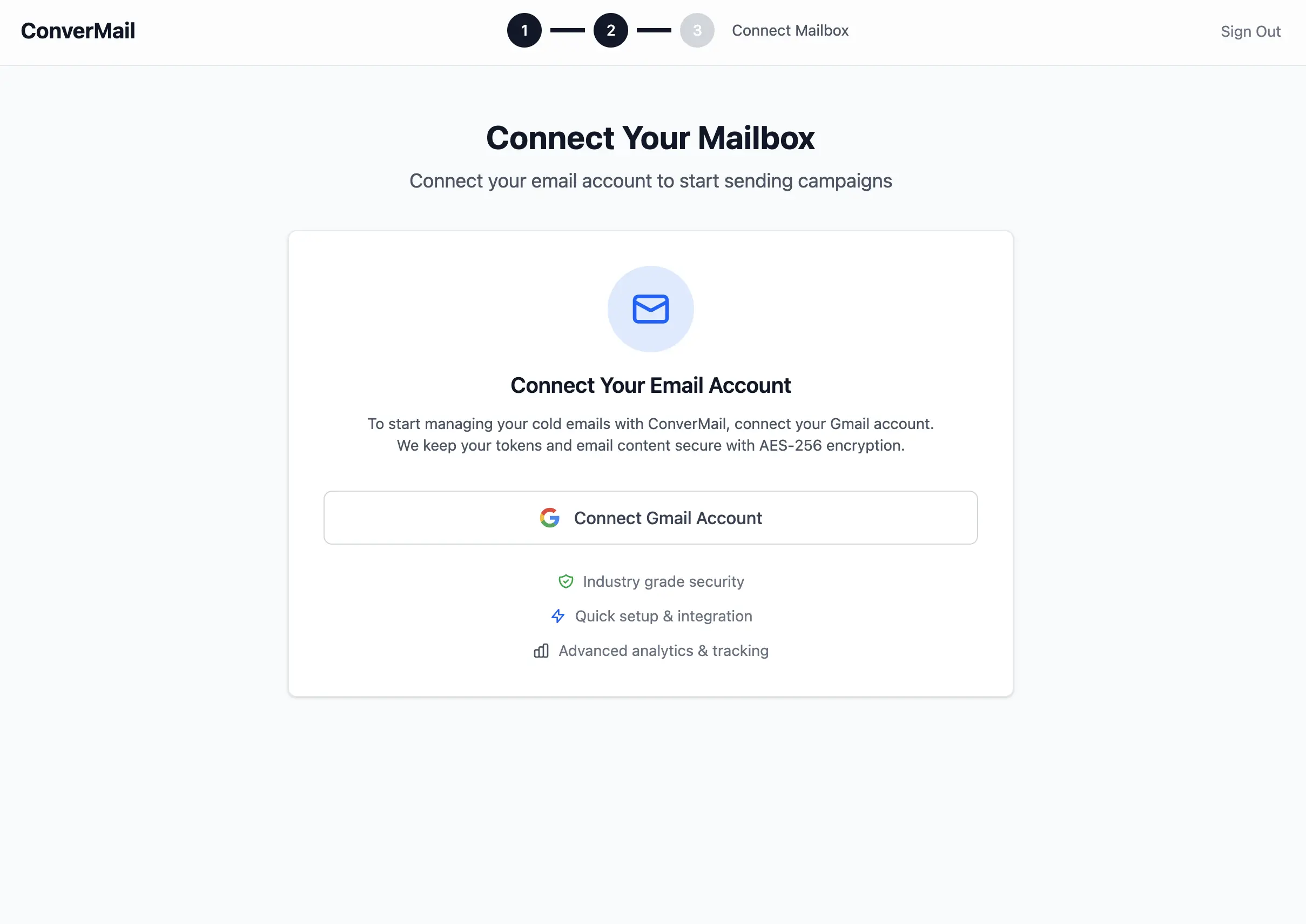 This guide walks you through the complete account setup process. You'll provide your information, connect your Gmail account, and be ready to start sending emails in just a few minutes.